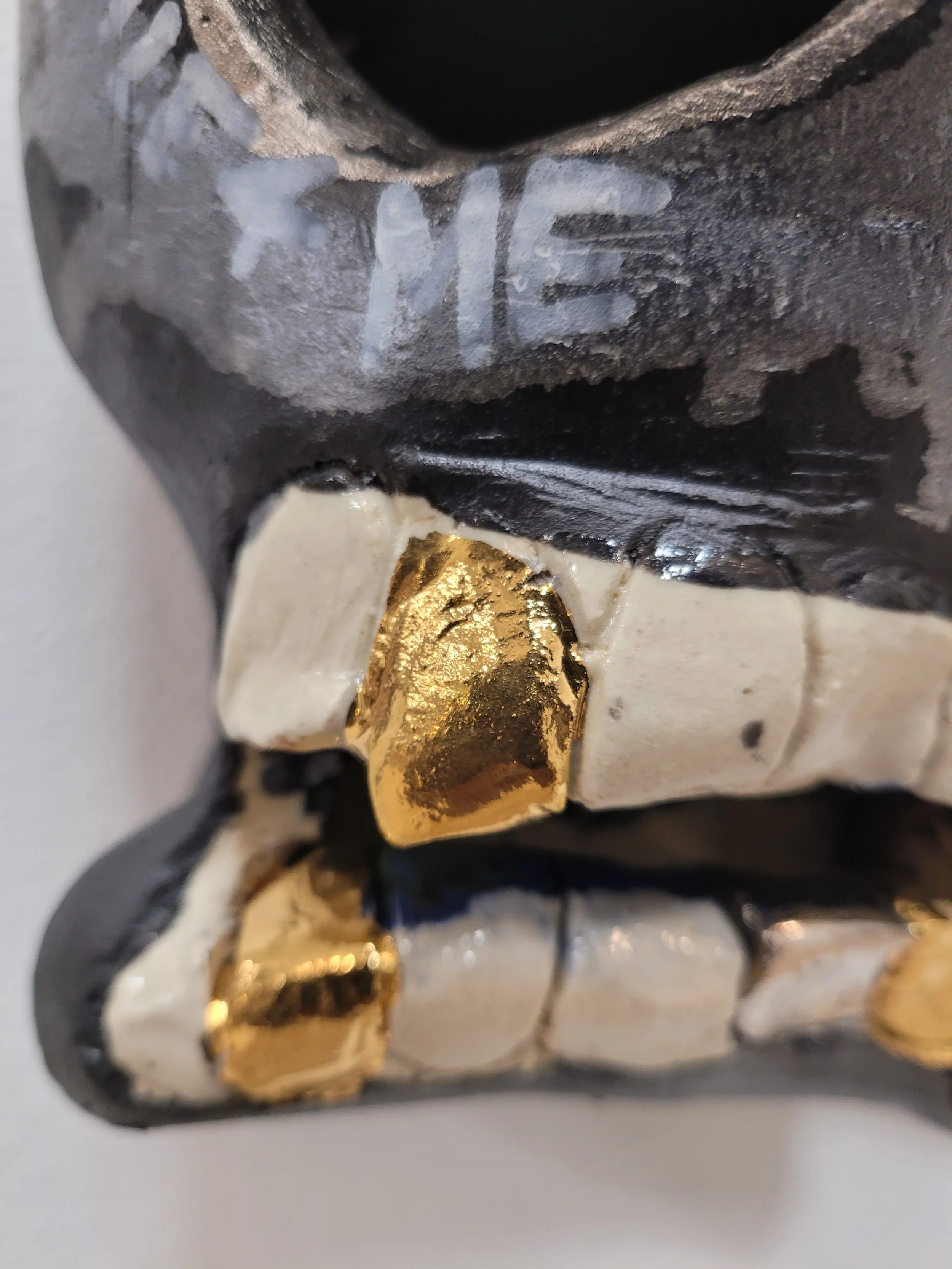 Glaze, Underglaze Chalk, White & Yellow Gold Luster, Ink on Hand-Cast Stoneware, with Smoked Cigar